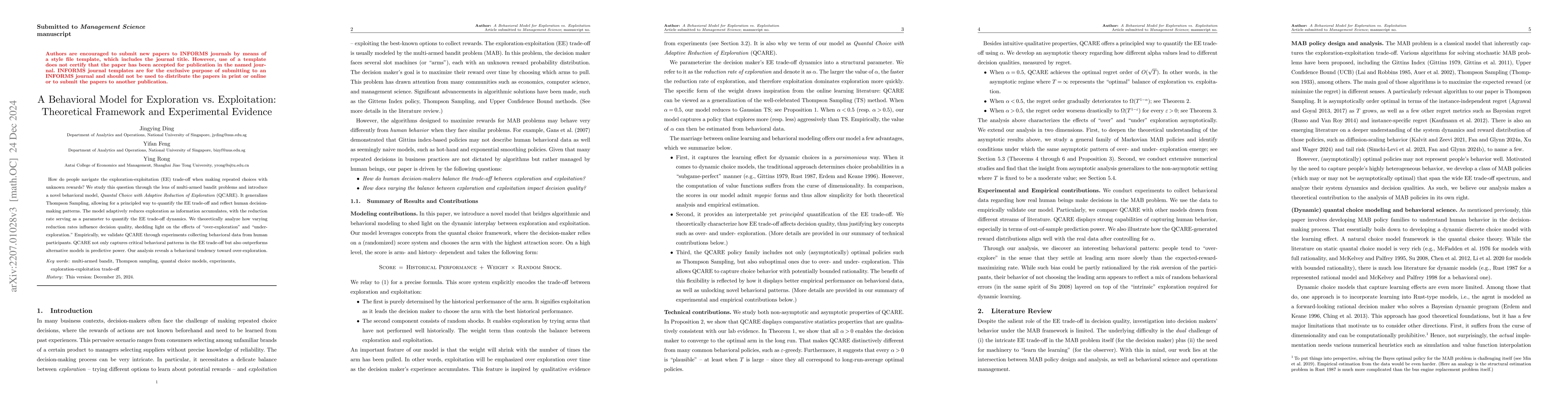 This paper introduces Myopic Quantal Response (MQR) policies for the multi-armed bandit problem, generalizing Thompson Sampling and managing exploration-exploitation trade-offs. It develops an asymptotic theory for MQR and uses it to diagnose suboptimal exploration behaviors in observed data.