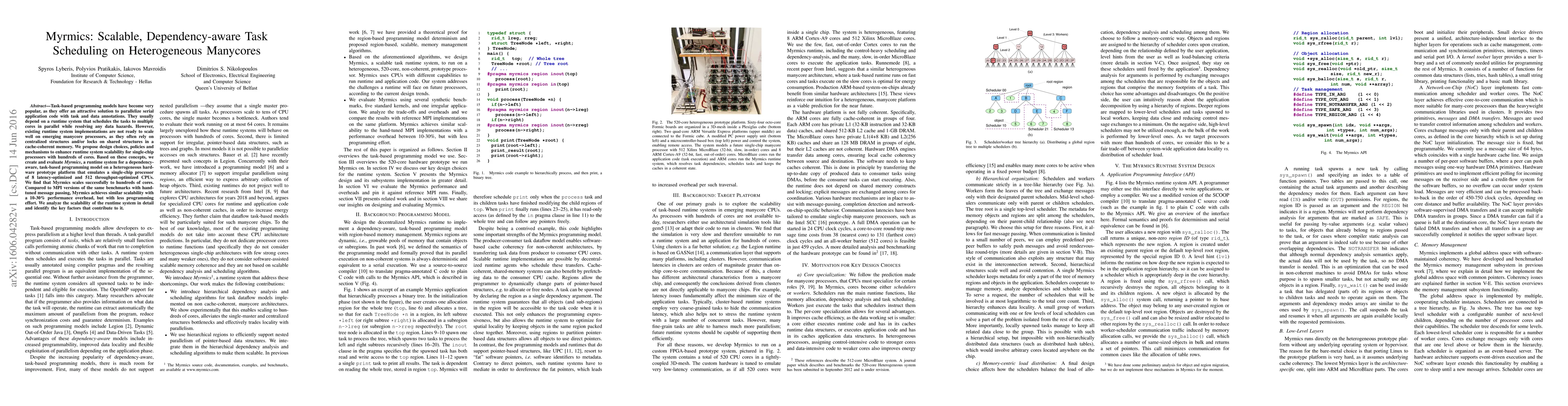 Researchers developed Myrmics, a scalable runtime system for task-based programming on heterogeneous manycore processors, achieving similar scalability with 10-30% performance overhead.