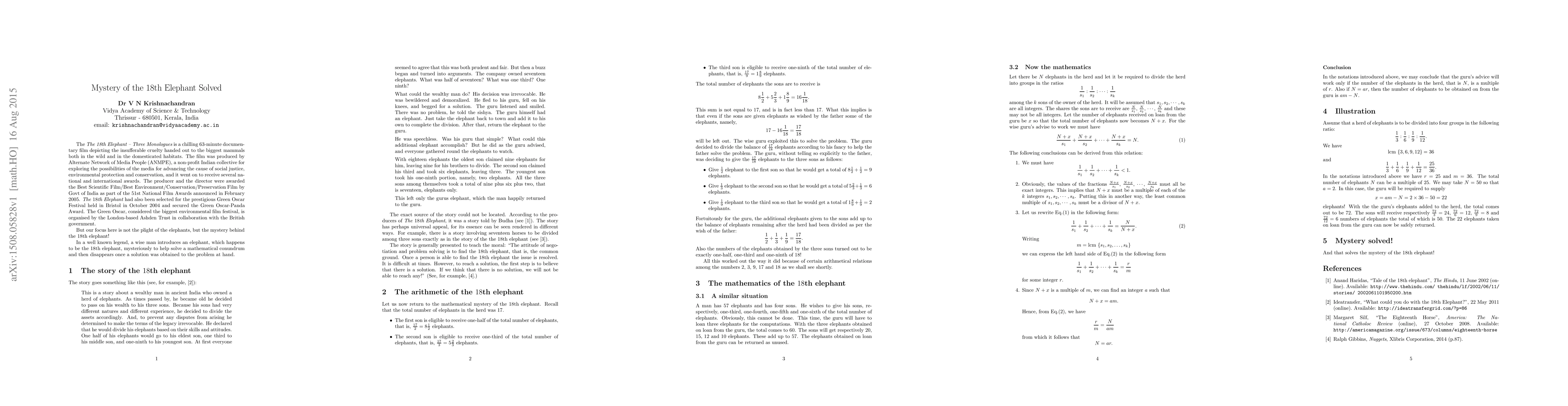 Researchers have solved a long-standing mystery surrounding an 18th elephant in popular legends about dividing a herd of elephants into groups in specific ratios. Their findings provide new insights into the mathematical underpinnings behind these stories.