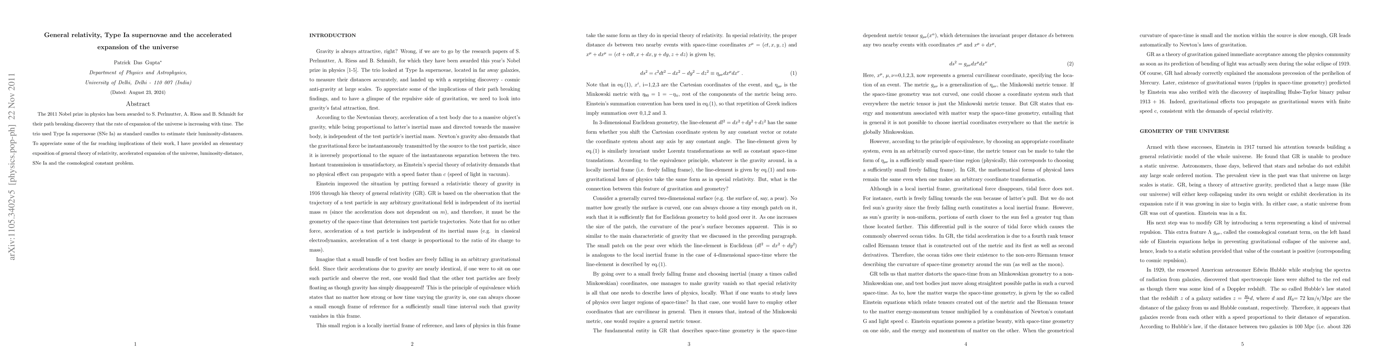 The 2011 Nobel prize in physics has been awarded to S. Perlmutter, A. Riess and B. Schmidt for their path breaking discovery that the rate of expansion of the universe is increasing with time. The trio used Type Ia supernovae (SNe Ia) as standard candles to estimate their luminosity-distances. To appreciate some of the far reaching implications of their work, I have provided an elementary exposition of general theory of relativity, accelerated expansion of the universe, luminosity-distance, SNe Ia and the cosmological constant problem.