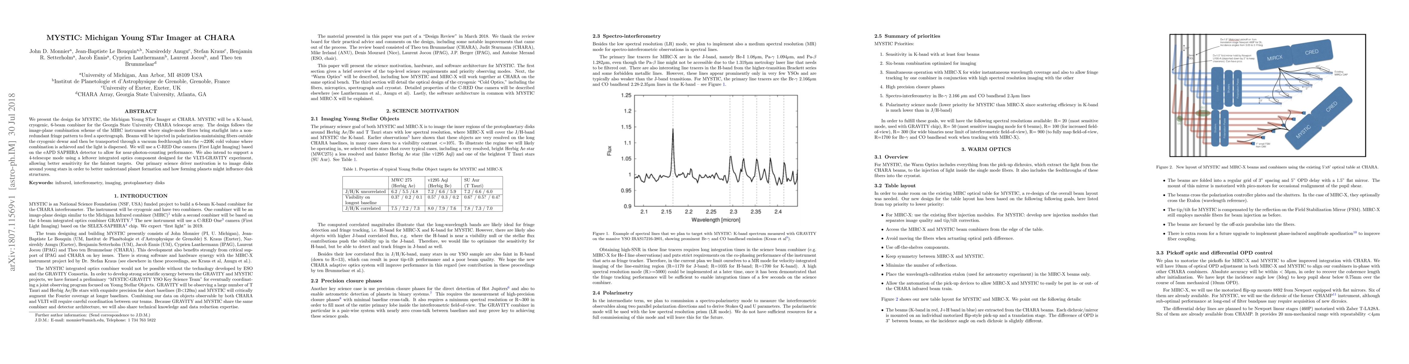 MYSTIC is a K-band cryogenic 6-beam combiner designed for the CHARA telescope array, aiming to image disks around young stars to study planet formation. It utilizes a non-redundant fringe pattern scheme and near-photon-counting performance for enhanced sensitivity.