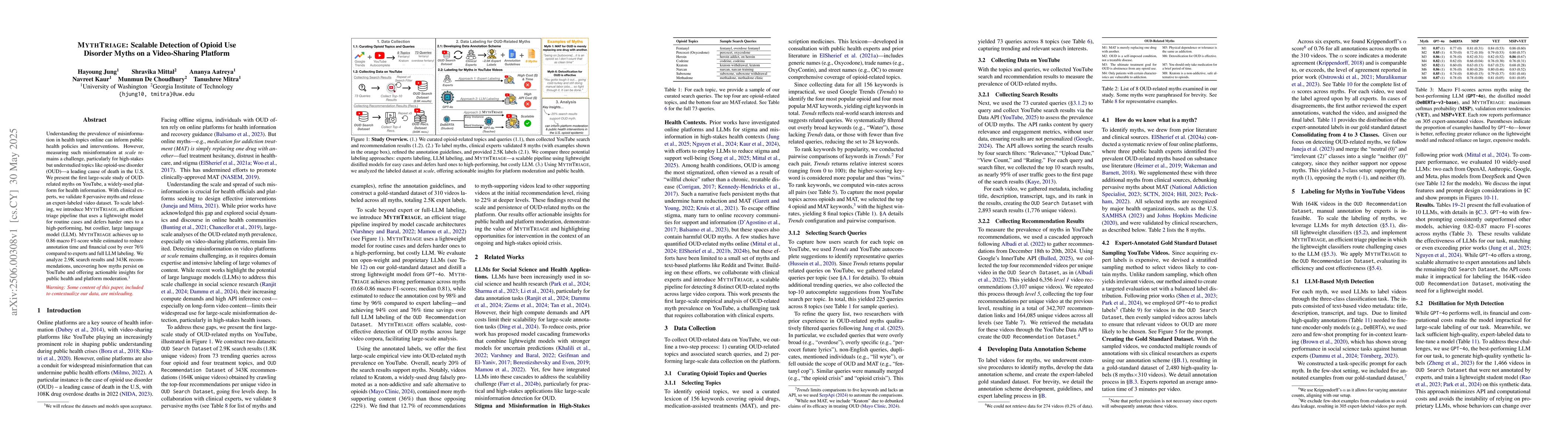 Researchers developed MythTriage to detect opioid-use disorder myths on YouTube, achieving a 0.86 macro F1-score while reducing annotation time and financial cost by 76%. The study uncovers how myths persist on the platform, offering actionable insights for public health and moderation.