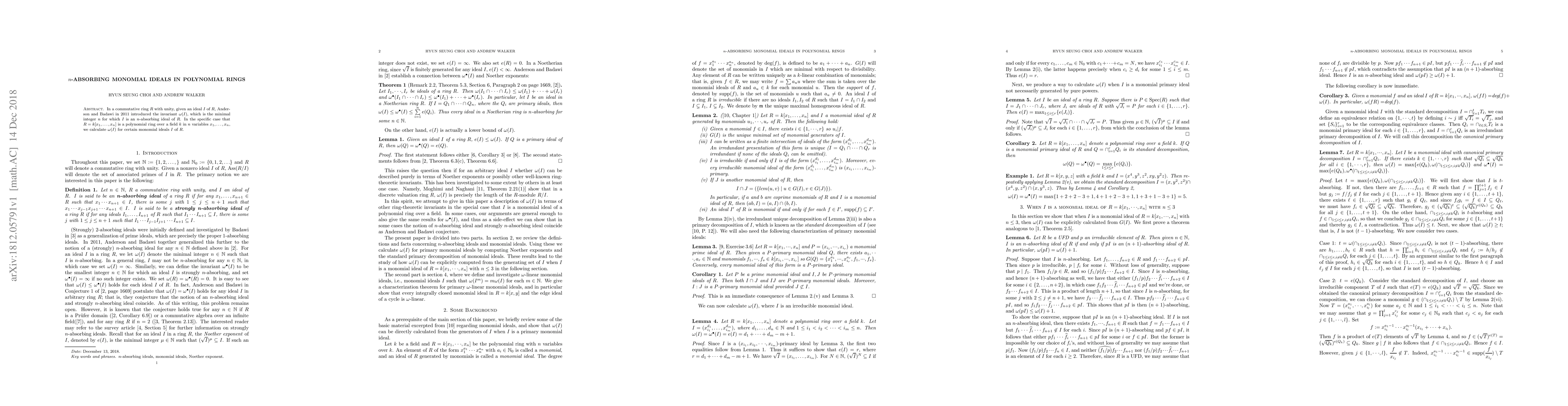 In a commutative ring $R$ with unity, given an ideal $I$ of $R$, Anderson and Badawi in 2011 introduced the invariant $\omega(I)$, which is the minimal integer $n$ for which $I$ is an $n$-absorbing ideal of $R$. In the specific case that $R = k[x_{1}, \ldots, x_{n}]$ is a polynomial ring over a field $k$ in $n$ variables $x_{1},\ldots, x_{n}$, we calculate $\omega(I)$ for certain monomial ideals $I$ of $R$.