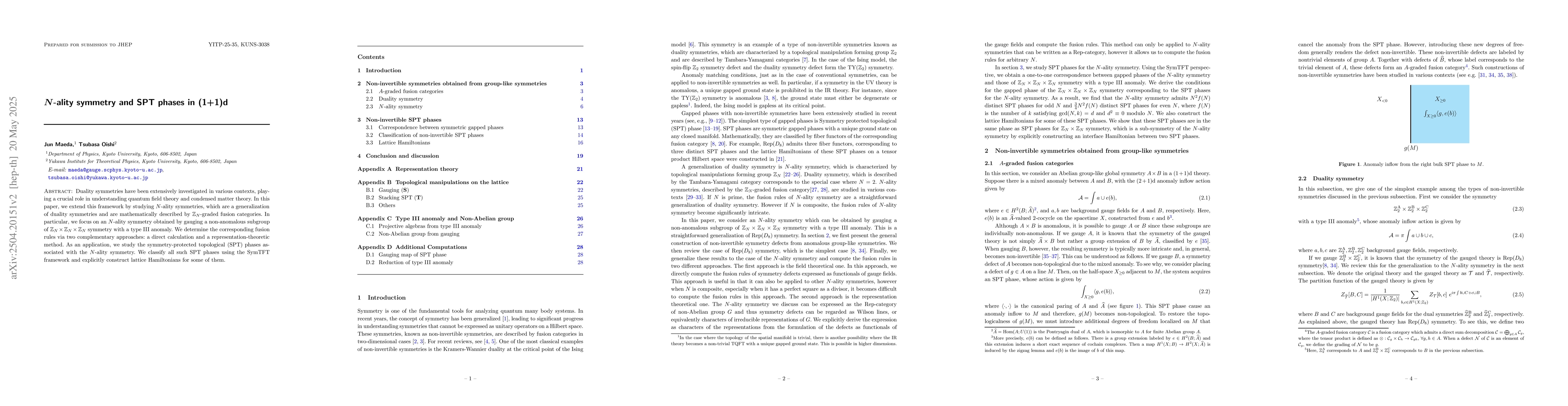 This research extends the understanding of duality symmetries by exploring $N$-ality symmetries, which could provide deeper insights into quantum field theory and condensed matter theory, potentially leading to new classifications of topological phases.