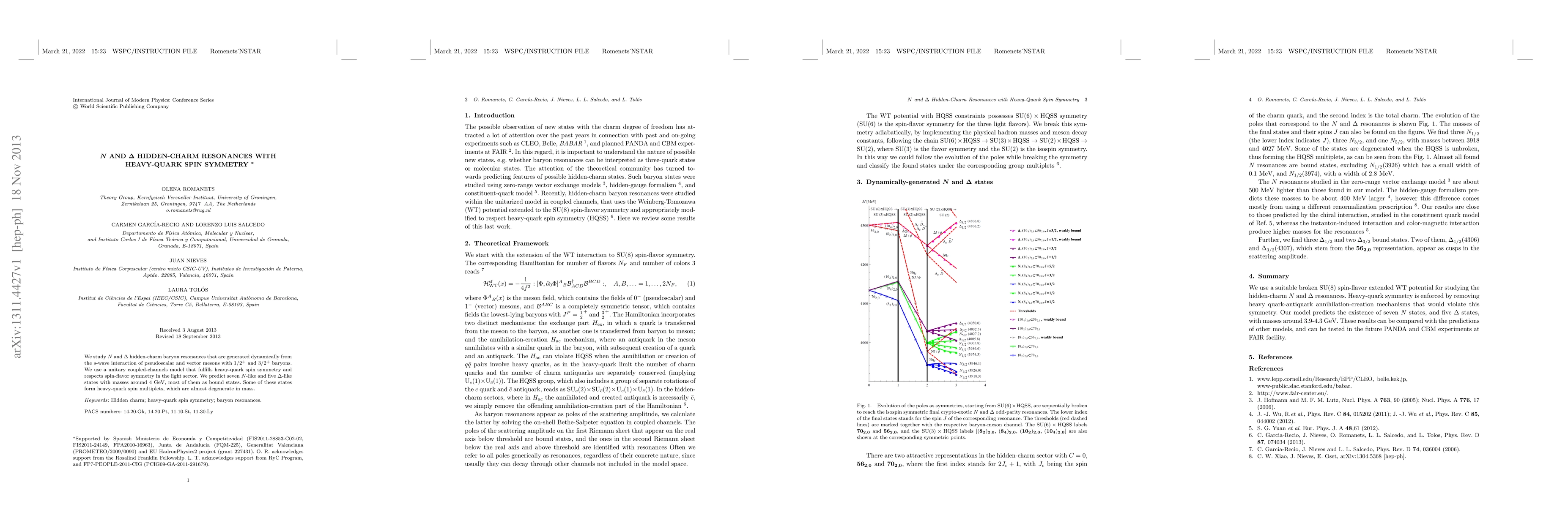 This paper investigates N and Δ hidden-charm baryon resonances using a unitary coupled-channels model that adheres to heavy-quark spin symmetry and light sector spin-flavor symmetry, predicting seven N-like and five Δ-like states around 4 GeV, mostly as bound states. Many of these states are nearly degenerate due to heavy-quark spin multiplets.