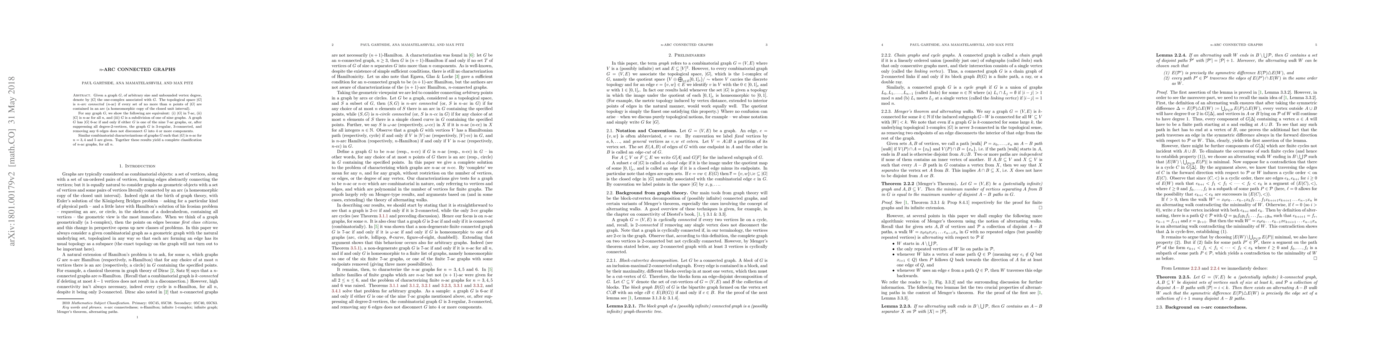 Given a graph G, of arbitrary size and unbounded vertex degree, denote by |G| the one-complex associated with $G$. The topological space |G| is n-arc connected (n-ac) if every set of no more than n points of |G| are contained in an arc (a homeomorphic copy of the closed unit interval). For any graph G, we show the following are equivalent: (i) |G| in 7-ac, (ii) |G| is n-ac for all n, and (iii) G is a subdivision of one of nine graphs. A graph G has |G| 6-ac if and only if either G is one of the nine 7-ac graphs, or, after suppressing all degree-2-vertices, the graph G is 3-regular, 3-connected, and removing any 6 edges does not disconnect G into 4 or more components. Similar combinatorial characterizations of graphs G such that |G| is n-ac for n=3, 4 and 5 are given. Together these results yield a complete classification of n-ac graphs, for all n.