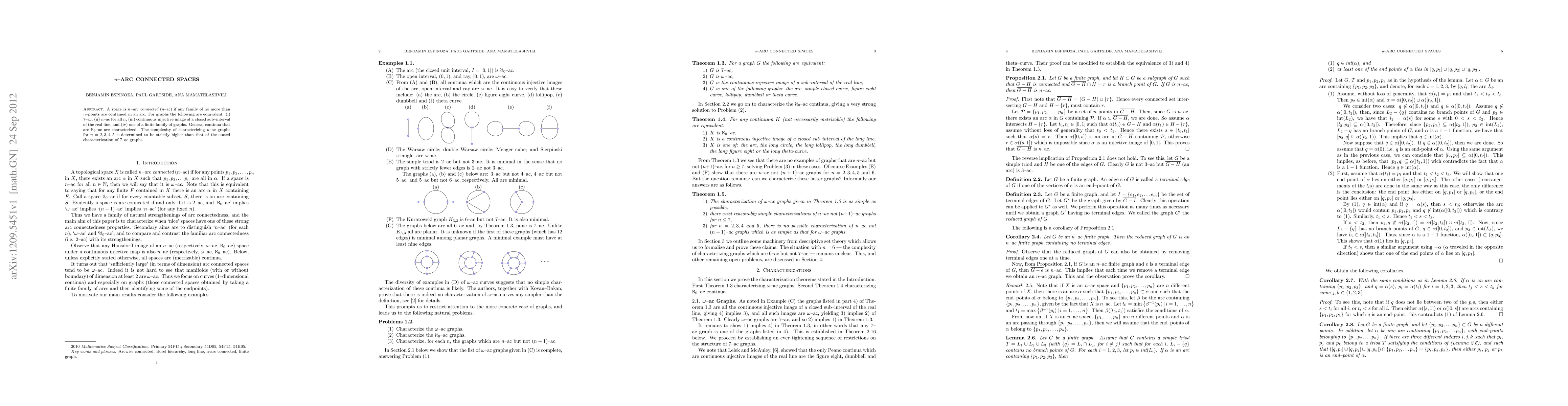This paper explores the concept of n-arc connected spaces, showing that certain conditions are equivalent for graphs, and characterizes general continua with specific connectivity properties. The complexity of classifying these spaces is also discussed.
