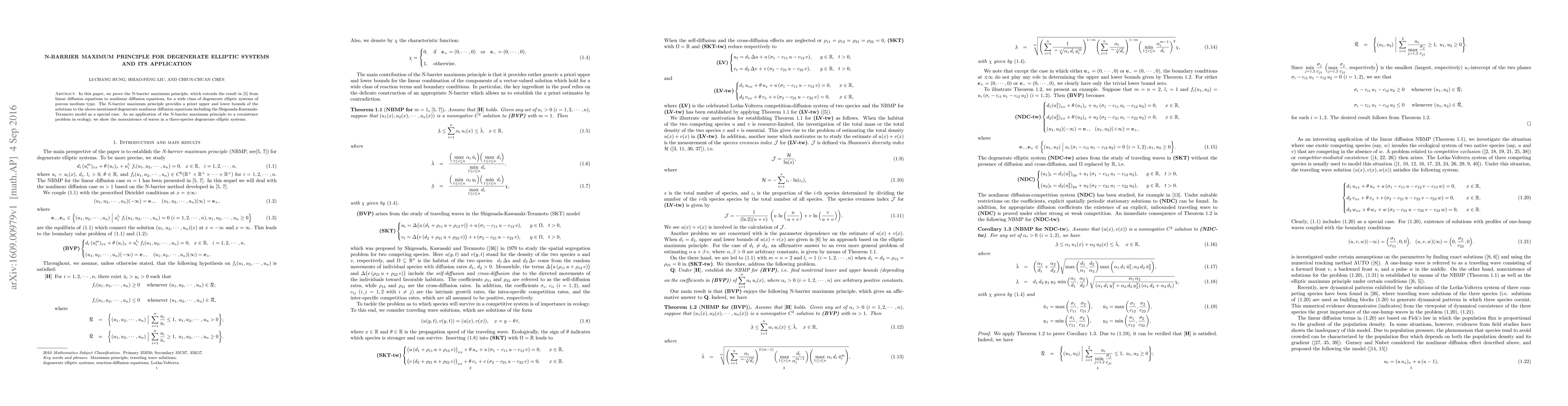 This paper proves the N-barrier maximum principle for a class of degenerate elliptic systems, extending results from linear to nonlinear diffusion equations. It provides a priori bounds for solutions and applies the principle to demonstrate the nonexistence of waves in a three-species ecological model.