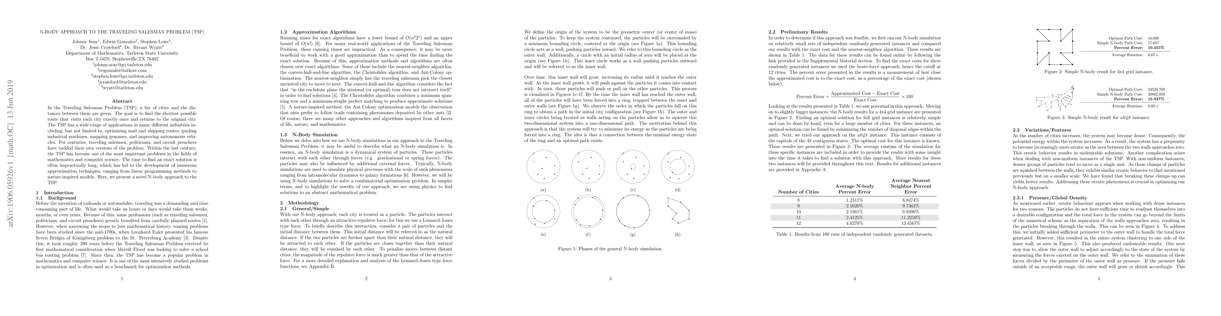 This paper introduces an innovative N-body approach to solving the Traveling Salesman Problem (TSP), aiming to find the shortest route visiting each city once and returning home. The proposed method seeks to offer a new approximation technique to tackle the computationally challenging nature of TSP.