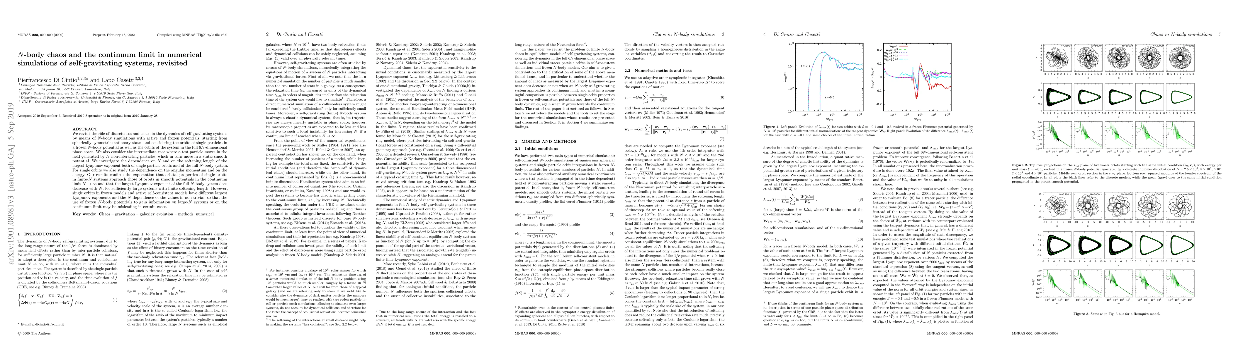 This paper revisits the role of chaos in self-gravitating systems through $N$-body simulations, finding that single orbits in finite-$N$ systems tend to resemble those in smooth potentials as $N$ approaches infinity. However, frozen and active models show different largest Lyapunov exponents, suggesting frozen models may not accurately represent large-$N$ systems or the continuum limit.
