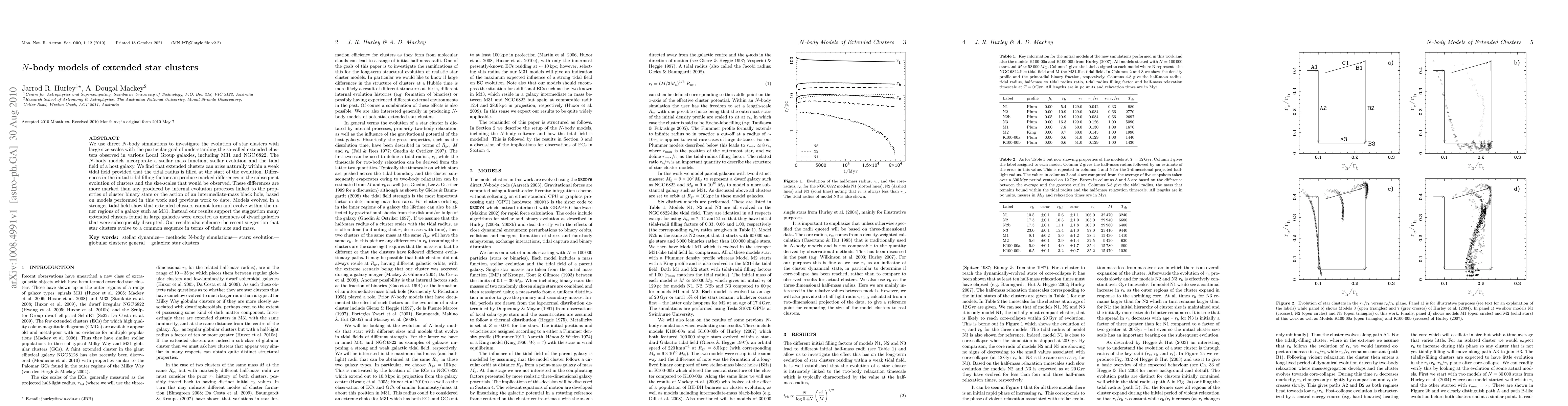 We use direct N-body simulations to investigate the evolution of star clusters with large size-scales with the particular goal of understanding the so-called extended clusters observed in various Local Group galaxies, including M31 and NGC6822. The N-body models incorporate a stellar mass function, stellar evolution and the tidal field of a host galaxy. We find that extended clusters can arise naturally within a weak tidal field provided that the tidal radius is filled at the start of the evolution. Differences in the initial tidal filling-factor can produce marked differences in the subsequent evolution of clusters and the size-scales that would be observed. These differences are more marked than any produced by internal evolution processes linked to the properties of cluster binary stars or the action of an intermediate-mass black hole, based on models performed in this work and previous work to date. Models evolved in a stronger tidal field show that extended clusters cannot form and evolve within the inner regions of a galaxy such as M31. Instead our results support the suggestion many extended clusters found in large galaxies were accreted as members of dwarf galaxies that were subsequently disrupted. Our results also enhance the recent suggestion that star clusters evolve to a common sequence in terms of their size and mass.