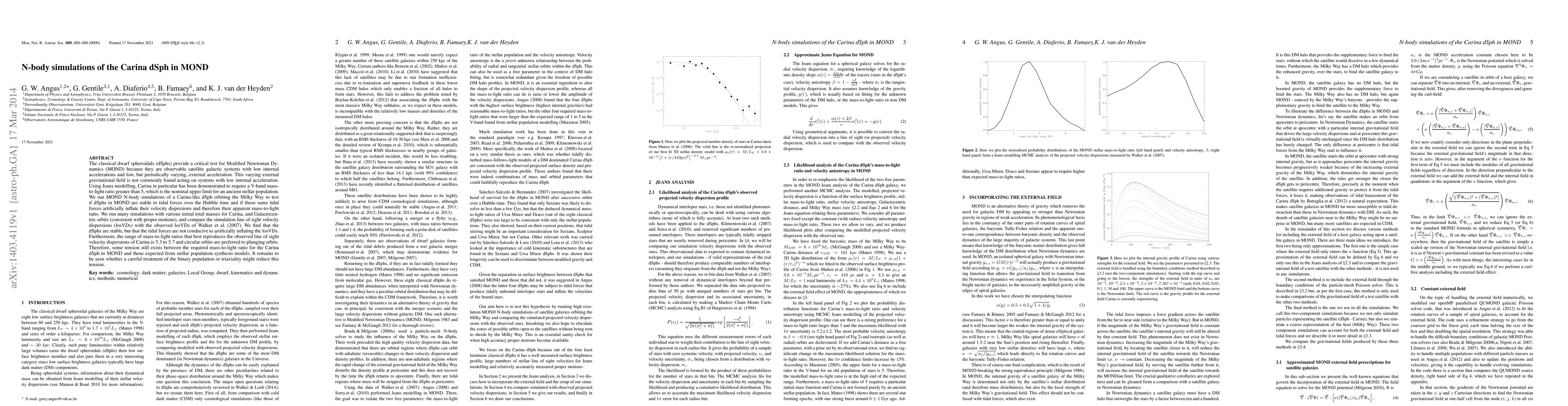 This paper uses MOND N-body simulations to test the stability of the Carina dSph under tidal forces and its impact on velocity dispersions. The simulations show that Carina dSphs are stable but tidal forces do not artificially inflate velocity dispersions, maintaining a mass-to-light ratio tension with stellar population models.