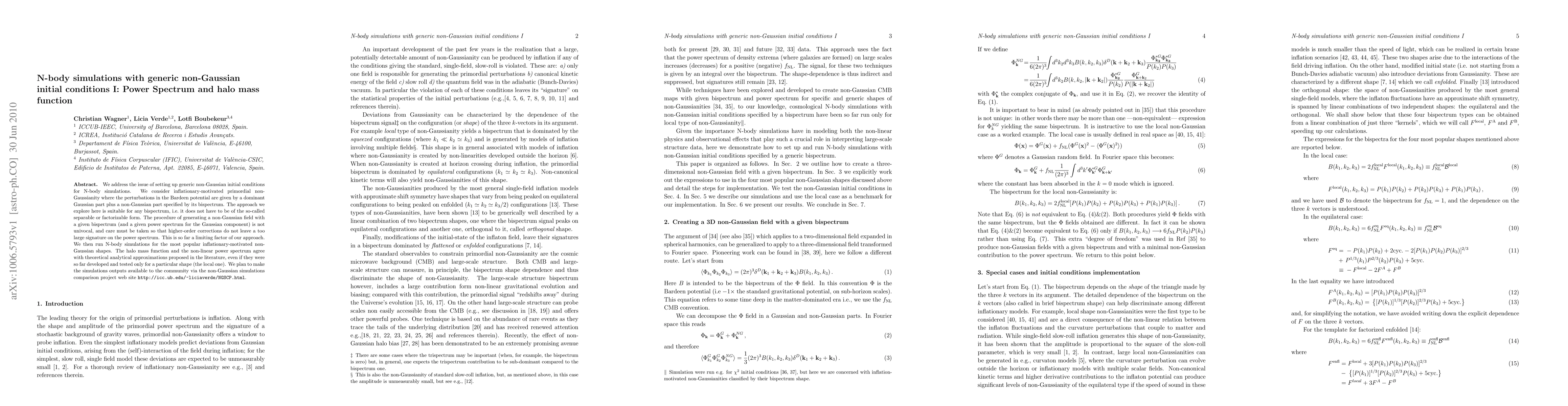 This paper explores generating N-body simulations with generic non-Gaussian initial conditions, focusing on the power spectrum and halo mass function. It addresses the challenge of creating a non-Gaussian field with a specified bispectrum while ensuring the power spectrum remains accurate, and plans to share simulation results through the non-Gaussian simulations comparison project.
