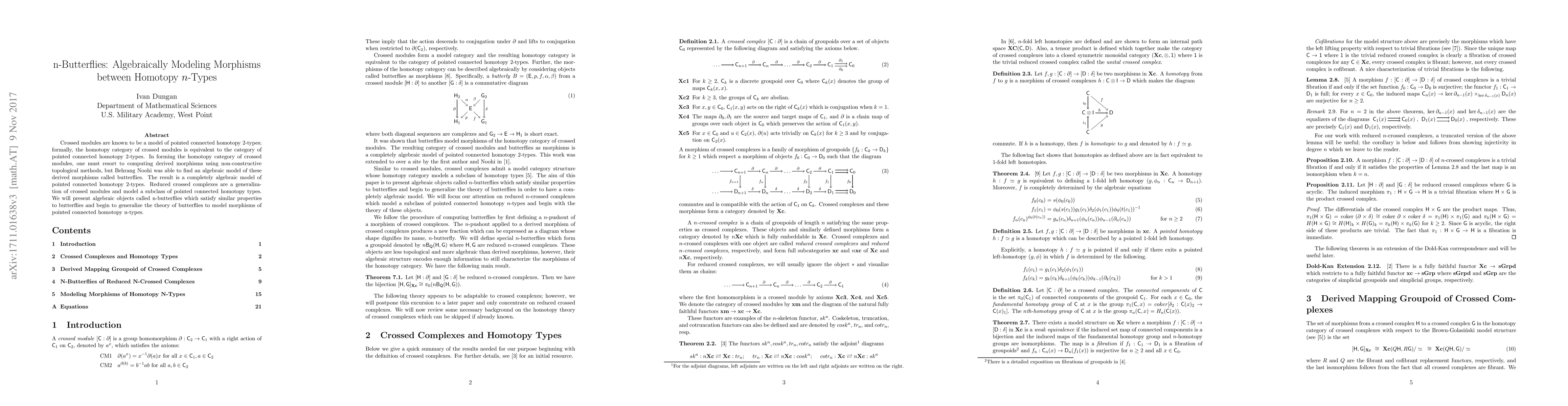 The paper introduces n-butterflies as algebraic objects that generalize butterflies, providing an algebraic model for morphisms between pointed connected homotopy n-types, extending the theory previously used for homotopy 2-types.