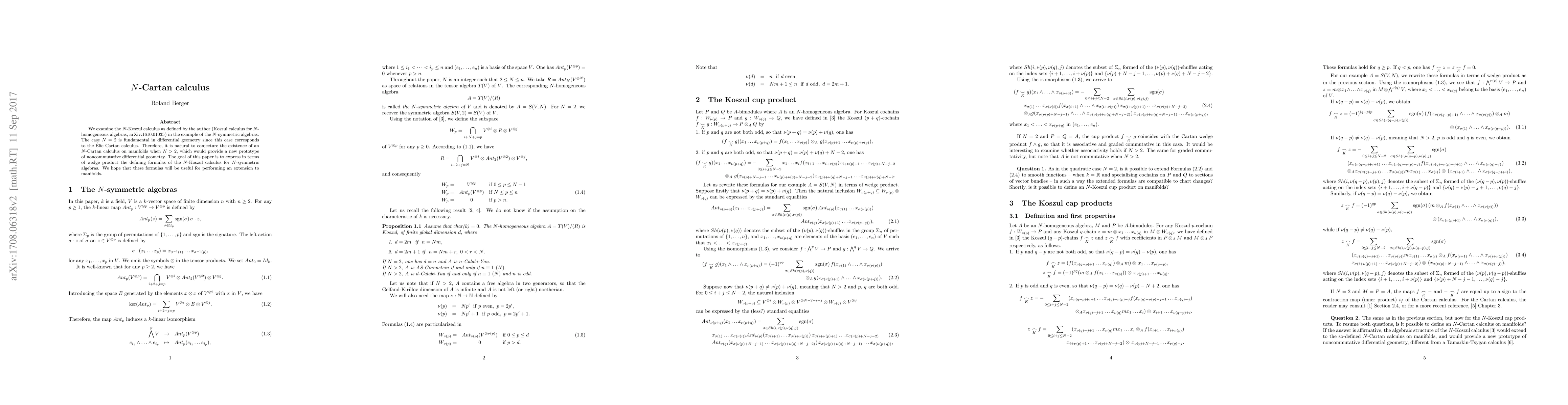 This paper explores the N-Koszul calculus for N-symmetric algebras, focusing on the conjecture that the N-Cartan calculus, analogous to Elie Cartan calculus for N=2, extends to manifolds for N>2, potentially introducing a novel noncommutative differential geometry.