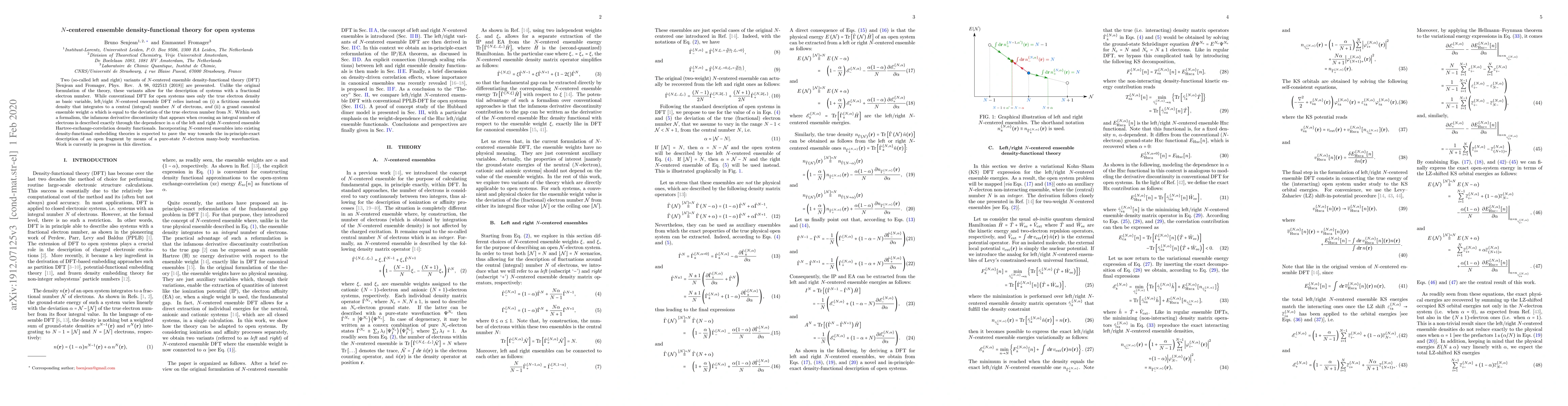 The main novelty of this work lies in the introduction of two variants of N-centered ensemble DFT that can describe systems with fractional electron numbers, offering a solution to the derivative discontinuity problem and paving the way for more accurate modeling of open systems using DFT.