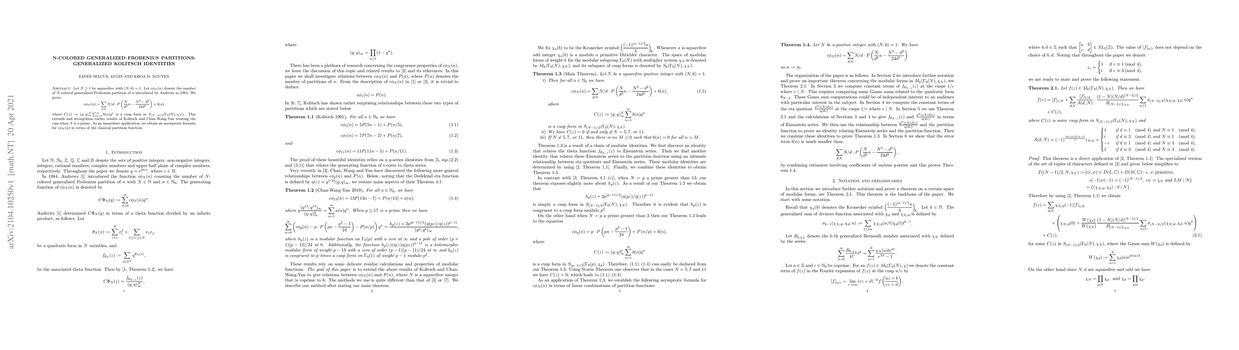 Researchers prove a formula for N-colored generalized Frobenius partitions, extending earlier results and providing an asymptotic formula in terms of the classical partition function.