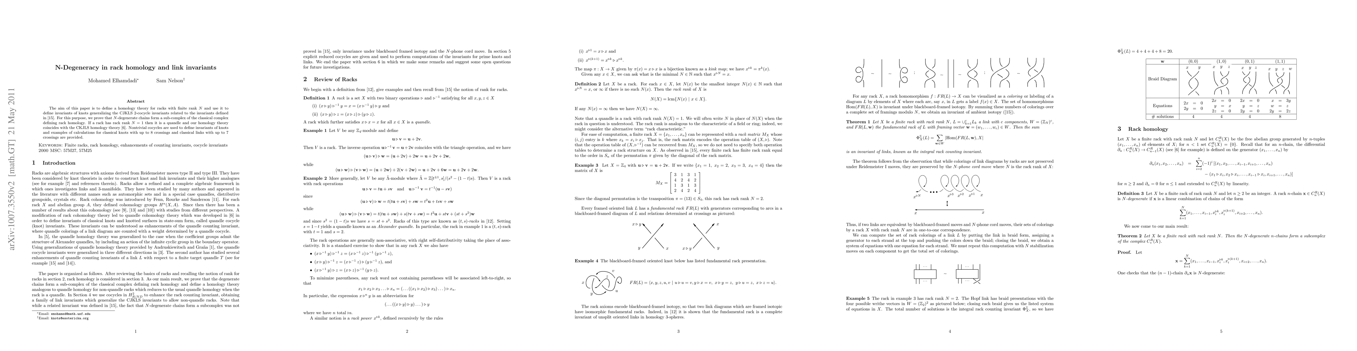 This paper introduces a homology theory for racks with finite rank N, establishing invariants for knots that generalize the CJKLS 2-cocycle invariants. The authors demonstrate that N-degenerate chains form a sub-complex in the classical rack homology, and provide calculations for classical knots and links as examples.