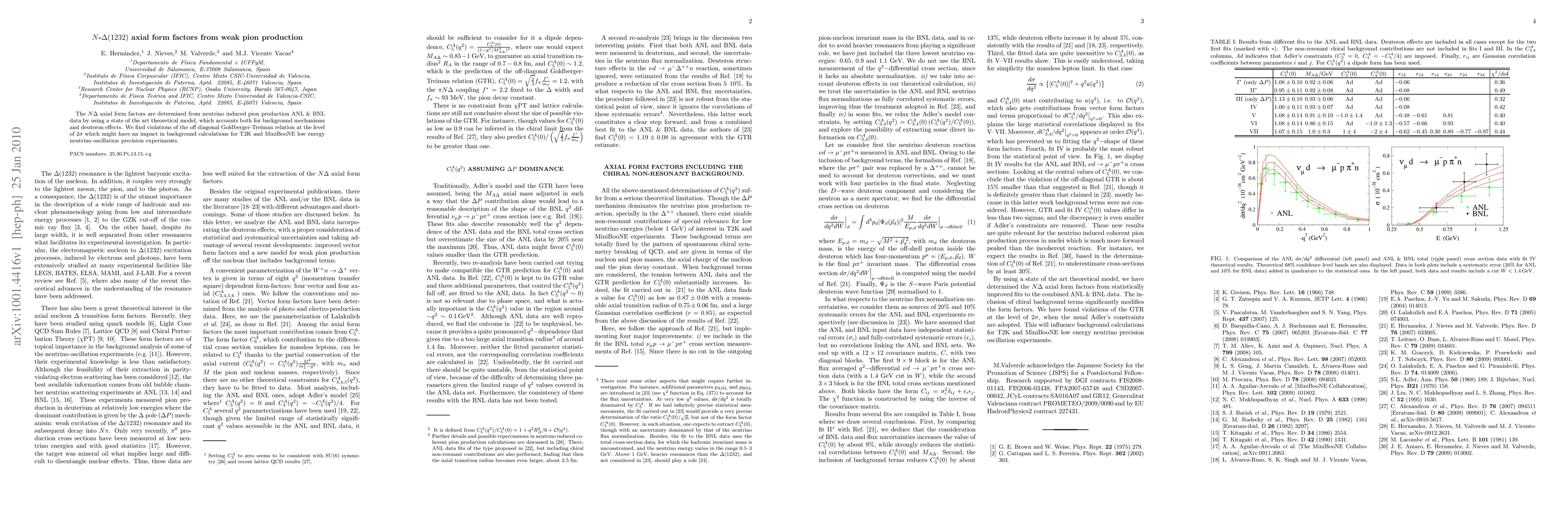 The N-Delta axial form factors are determined from neutrino induced pion production ANL & BNL data by using a state of the art theoretical model, which accounts both for background mechanisms and deuteron effects. We find violations of the off diagonal Goldberger-Treiman relation at the level of 2 sigma which might have an impact in background calculations for T2K and MiniBooNE low energy neutrino oscillation precision experiments.