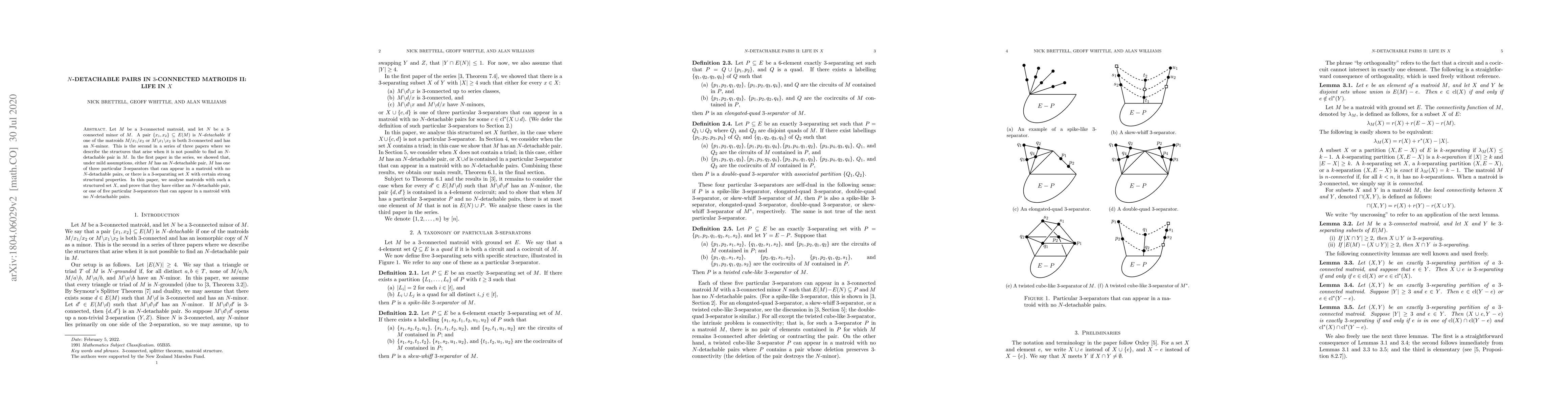 This paper, the second in a series, explores 3-connected matroids lacking N-detachable pairs, focusing on those with a specific 3-separating set X. It's proven that such matroids either contain an N-detachable pair or exhibit one of five distinct 3-separators, advancing understanding of matroid structures without N-detachable pairs.