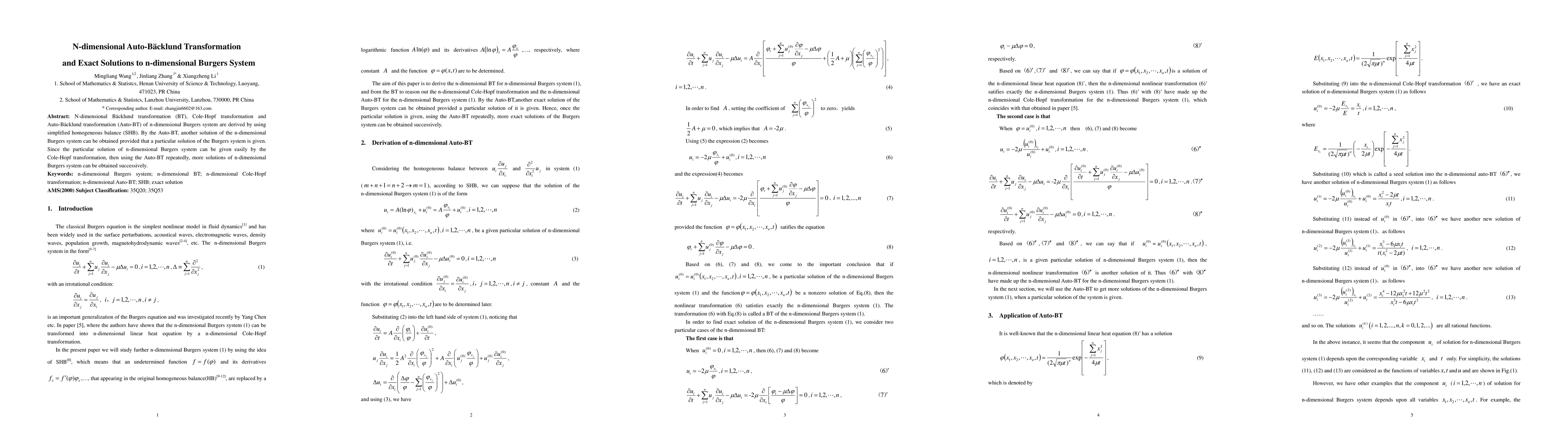 This paper derives N-dimensional Bäcklund, Cole-Hopf, and Auto-Bäcklund transformations for the n-dimensional Burgers system using simplified homogeneous balance (SHB). It demonstrates how the Auto-Bäcklund transformation can generate additional solutions from a given particular solution, thereby providing a systematic method for obtaining exact solutions to the system.