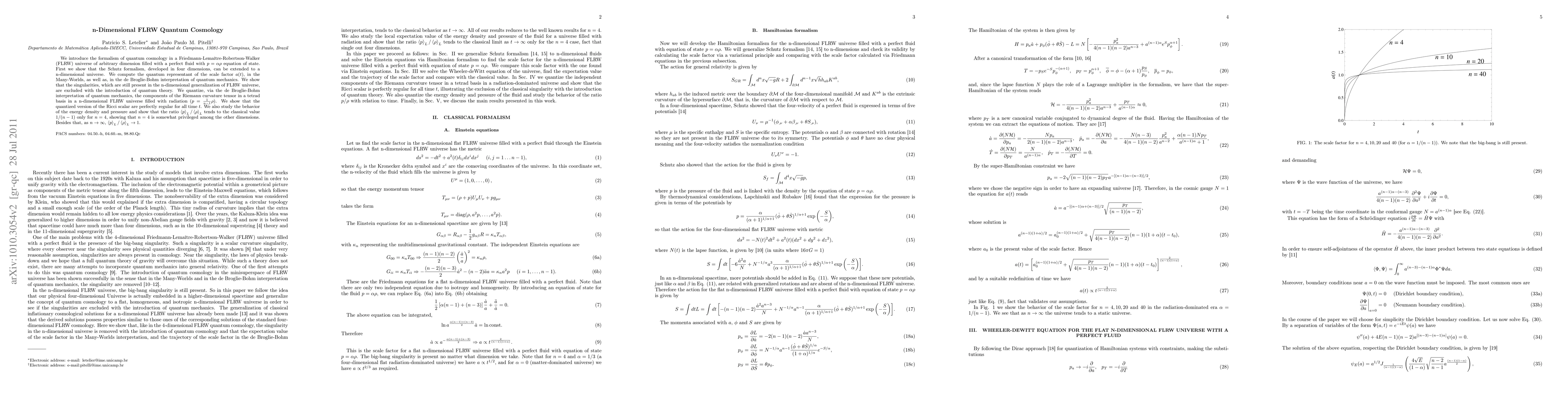 This paper extends the Schutz formalism of quantum cosmology to n-dimensional FLRW universes, demonstrating that quantum theory can regularize singularities and regularize the Ricci scalar. It finds that while the ratio of pressure to density approaches the classical value in four dimensions, it tends to unity as the number of dimensions approaches infinity.