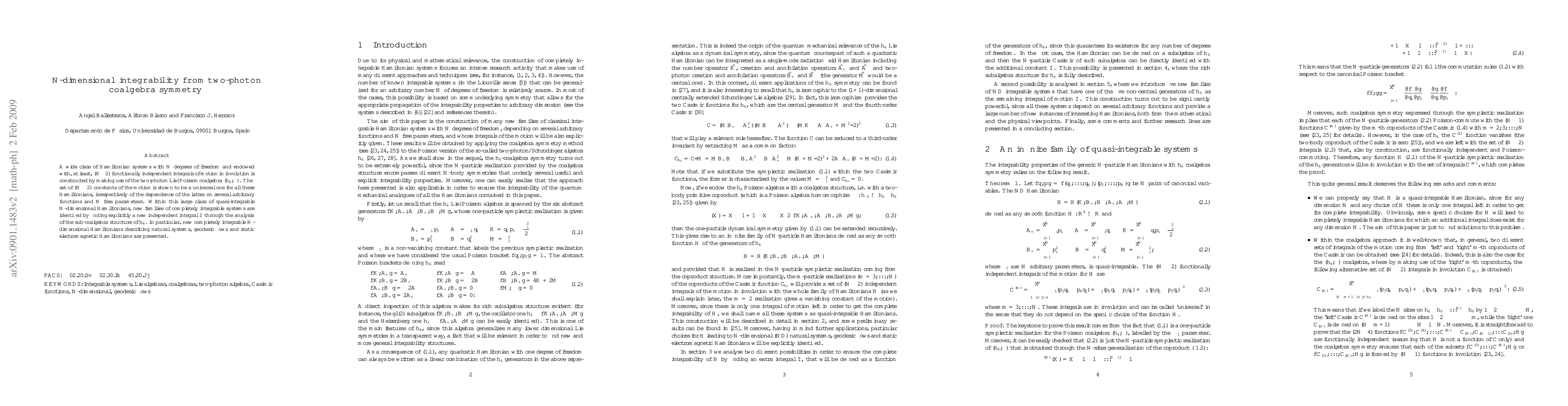 This paper constructs N-dimensional integrable Hamiltonian systems using the two-photon Lie-Poisson coalgebra, identifying (N-2) universally independent integrals of motion. It further discovers new completely integrable systems through sub-coalgebra structure analysis, presenting applications to natural systems, geodesic flows, and static electromagnetic Hamiltonians.