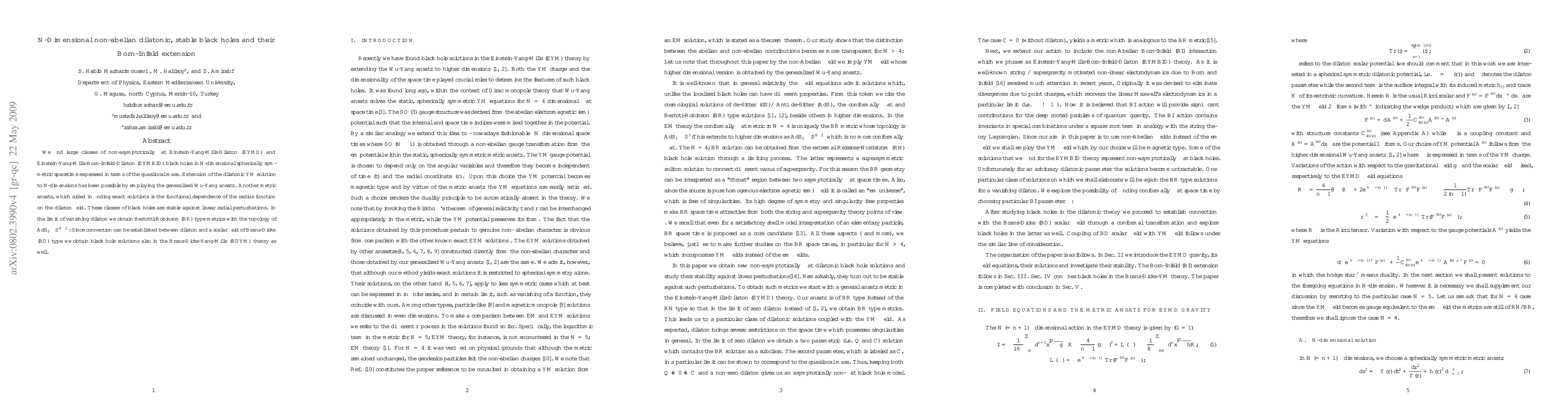 We find large classes of non-asymptotically flat Einstein-Yang-Mills-Dilaton (EYMD) and Einstein-Yang-Mills-Born-Infeld-Dilaton (EYMBID) black holes in N-dimensional spherically symmetric spacetime expressed in terms of the quasilocal mass. Extension of the dilatonic YM solution to N-dimensions has been possible by employing the generalized Wu-Yang ansatz. Another metric ansatz, which aided in finding exact solutions is the functional dependence of the radius function on the dilaton field. These classes of black holes are stable against linear radial perturbations. In the limit of vanishing dilaton we obtain Bertotti-Robinson (BR) type metrics with the topology of $AdS_{2}\times S^{N-2}.$ Since connection can be established between dilaton and a scalar field of Brans-Dicke (BD) type we obtain black hole solutions also in the Brans-Dicke-Yang-Mills (BDYM) theory as well.
