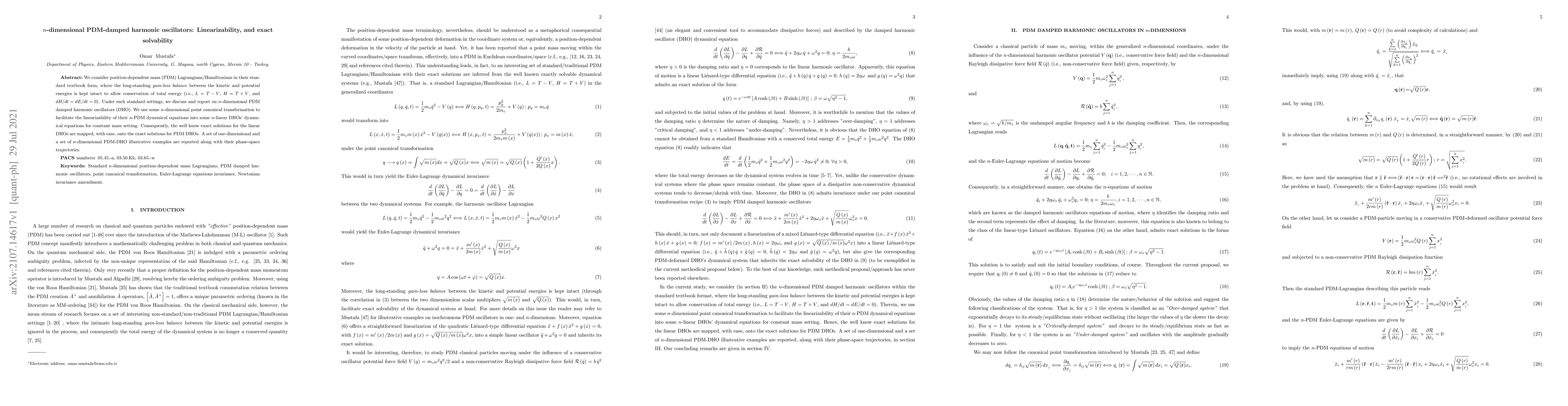 We consider position-dependent mass (PDM) Lagrangians/Hamiltonians in their standard textbook form, where the long-standing \emph{gain-loss balance} between the kinetic and potential energies is kept intact to allow conservation of total energy (i.e., $L=T-V$, $H=T+V$, and $dH/dt=dE/dt=0$). Under such standard settings, we discuss and report on $n$-dimensional PDM damped harmonic oscillators (DHO). We use some $n$-dimensional point canonical transformation to facilitate the linearizability of their $n$-PDM dynamical equations into some $n$-linear DHOs' dynamical equations for constant mass setting. Consequently, the well know exact solutions for the linear DHOs are mapped, with ease, onto the exact solutions for PDM DHOs. A set of one-dimensional and a set of $n$-dimensional PDM-DHO illustrative examples are reported along with their phase-space trajectories.