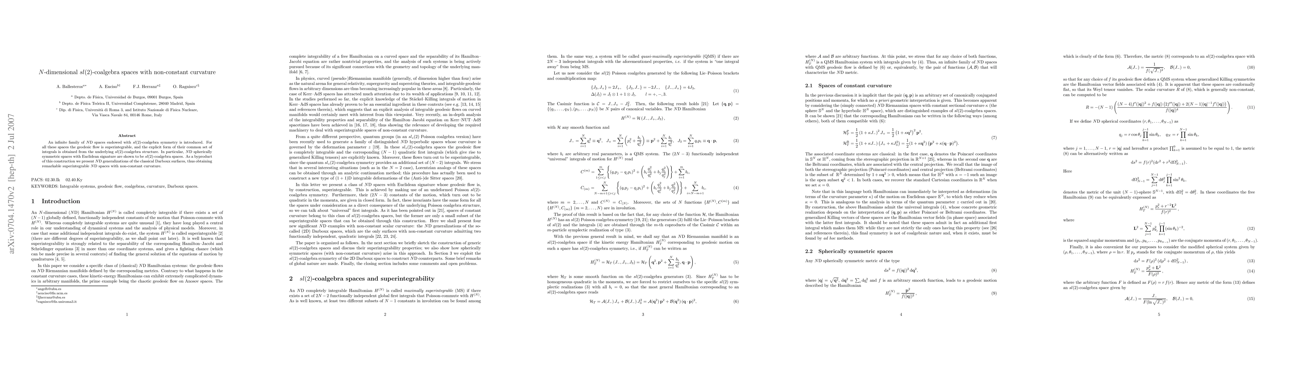 This paper introduces an infinite family of N-dimensional spaces with sl(2)-coalgebra symmetry, demonstrating that their geodesic flows are superintegrable. The study reveals that these spaces, including N-dimensional spherically symmetric spaces with Euclidean signature, are characterized by a common set of integrals derived from their sl(2)-coalgebra structure, leading to remarkable superintegrable spaces with non-constant curvature.