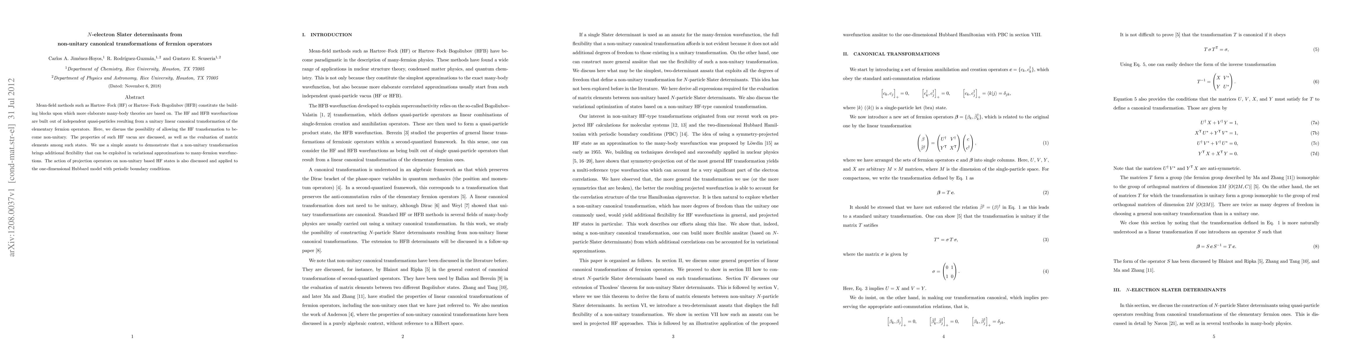 This paper explores the potential of non-unitary canonical transformations in the Hartree-Fock method to construct N-electron Slater determinants, offering additional flexibility in variational approximations. It also examines the properties and matrix elements of these non-unitary Hartree-Fock states and applies them to the one-dimensional Hubbard model.