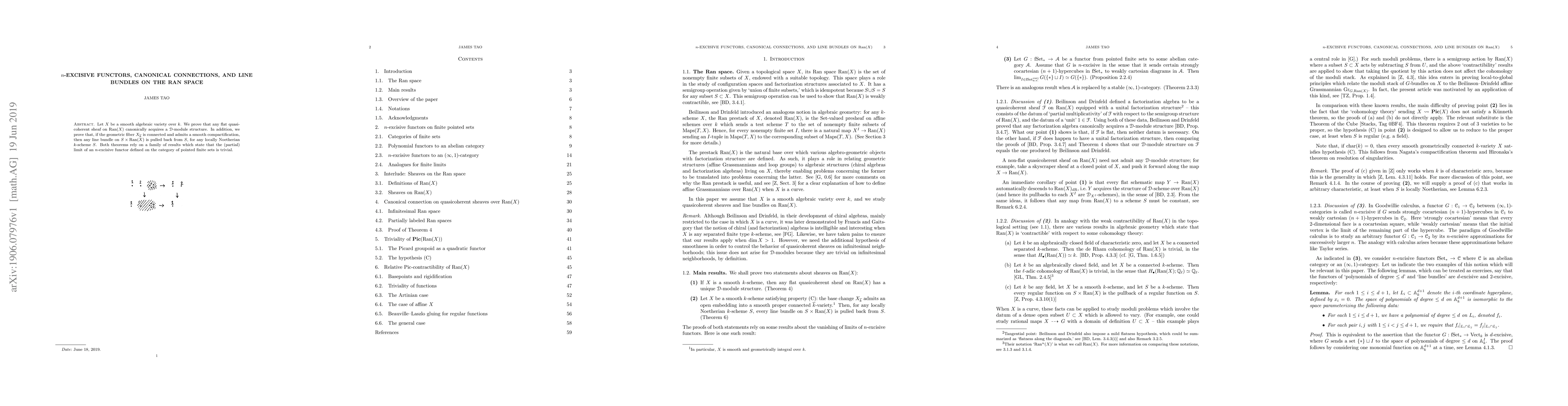 Let $X$ be a smooth algebraic variety over $k$. We prove that any flat quasicoherent sheaf on $\operatorname{Ran}(X)$ canonically acquires a D-module structure. In addition, we prove that, if the geometric fiber $X_{\overline{k}}$ is connected and admits a smooth compactification, then any line bundle on $S \times \operatorname{Ran}(X)$ is pulled back from $S$, for any locally Noetherian $k$-scheme $S$. Both theorems rely on a family of results which state that the (partial) limit of an $n$-excisive functor defined on the category of pointed finite sets is trivial.