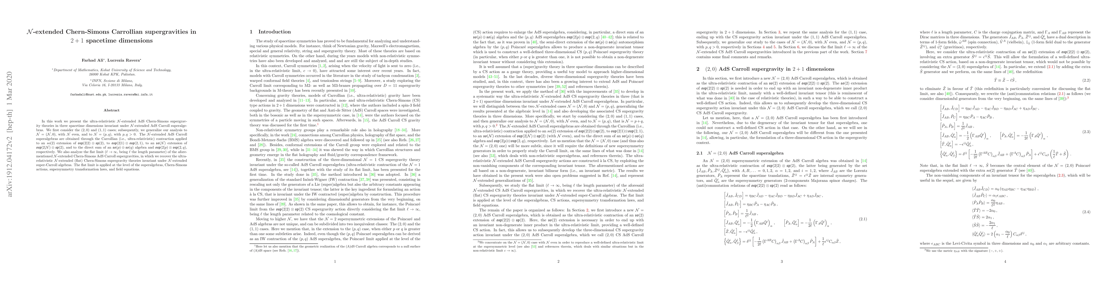This paper develops $\mathcal{N}$-extended AdS Chern-Simons supergravity theories in 2+1 dimensions invariant under $\mathcal{N}$-extended AdS Carroll superalgebras, and analyzes their flat limit to obtain ultra-relativistic $\mathcal{N}$-extended Chern-Simons supergravity theories invariant under $\mathcal{N}$-extended super-Carroll algebras.
