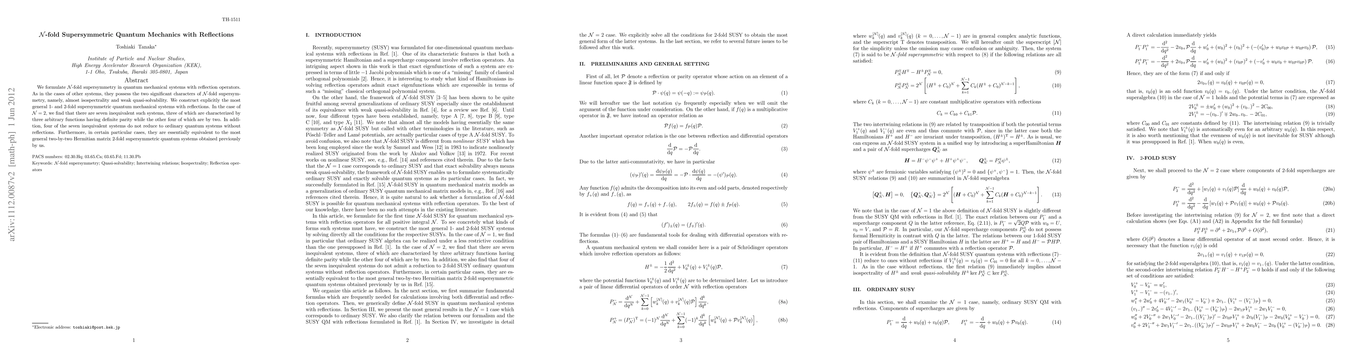 This paper formulates N-fold supersymmetry in quantum mechanics with reflection operators, demonstrating almost isospectrality and weak quasi-solvability. It explicitly constructs 1- and 2-fold supersymmetric systems with reflections, identifying seven inequivalent 2-fold systems, four of which are distinct from ordinary quantum systems.
