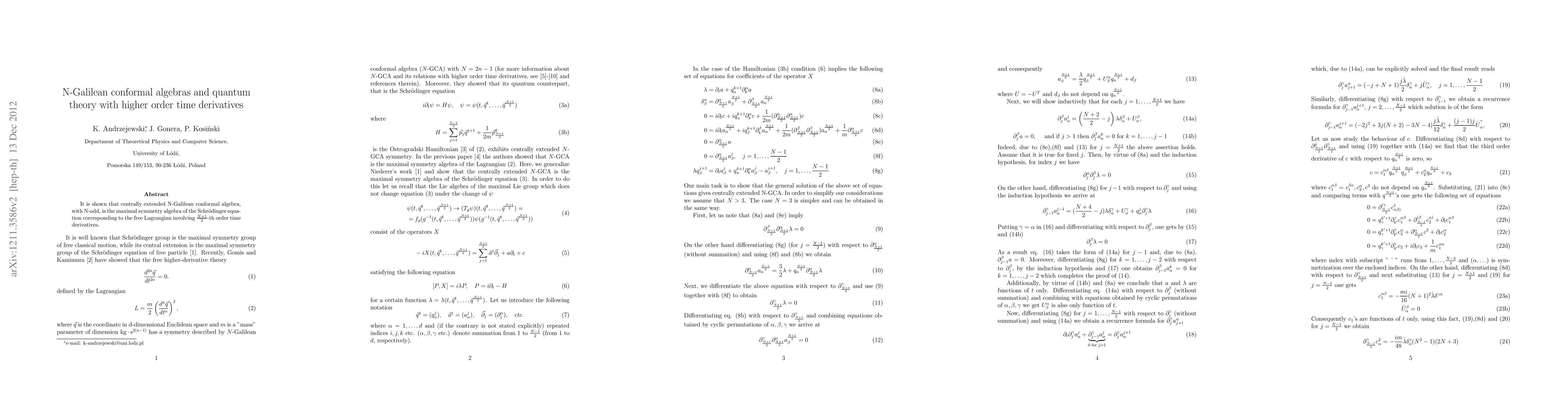 This paper demonstrates that the centrally extended N-Galilean conformal algebra serves as the maximal symmetry algebra for the Schrödinger equation linked to a free Lagrangian that includes (N+1)/2-th order time derivatives. The research highlights the connection between conformal symmetries and quantum systems with higher-order time derivatives.