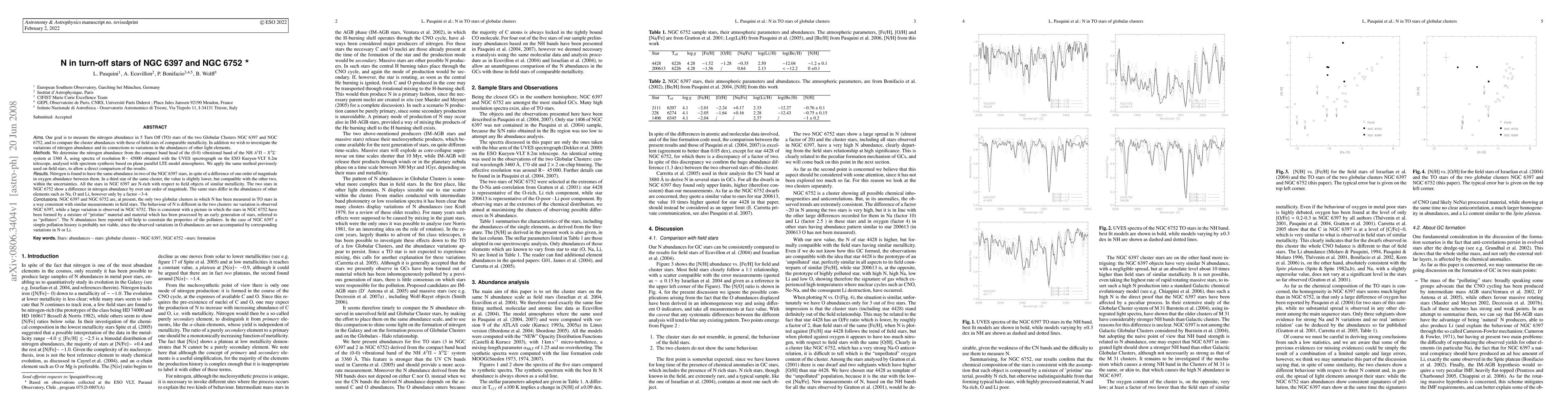 This study measures nitrogen abundance in Turn Off stars of globular clusters NGC 6397 and NGC 6752, finding consistent nitrogen levels in NGC 6397 stars despite large oxygen abundance differences. In contrast, NGC 6752 stars show significant nitrogen variation, suggesting a mixture of pristine and processed material, which helps constrain the properties of early polluting stars.