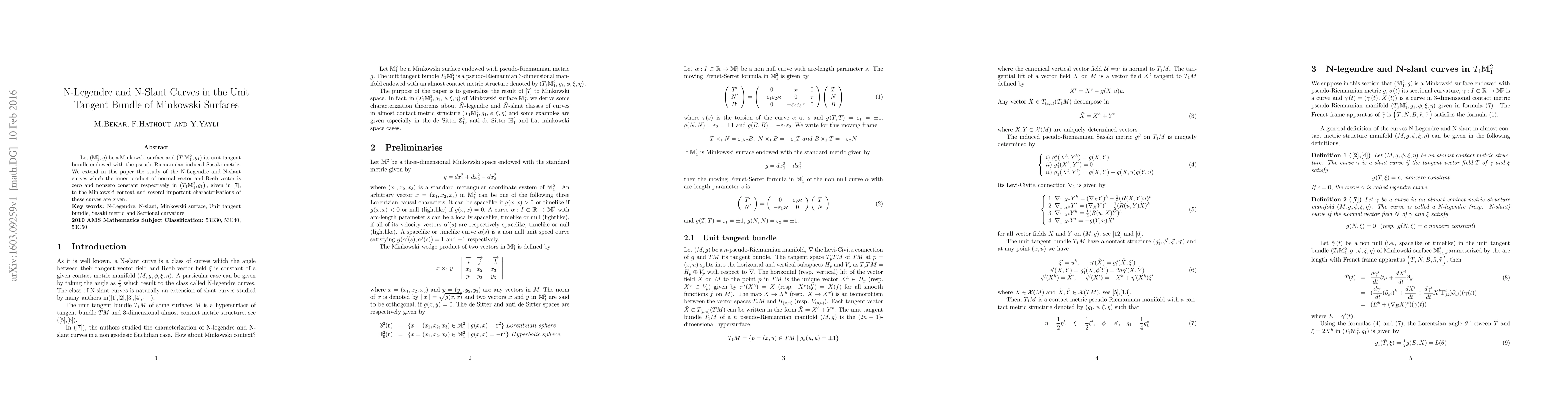 This paper studies N-Legendre and N-slant curves on Minkowski surfaces, focusing on characterizations of these curves in the unit tangent bundle with a pseudo-Riemannian induced Sasaki metric.
