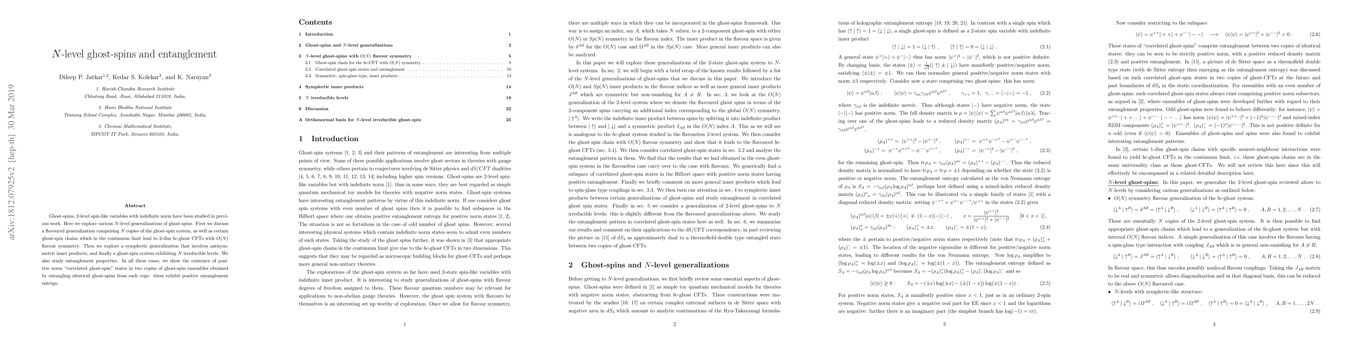 Ghost-spins, 2-level spin-like variables with indefinite norm have been studied in previous work. Here we explore various $N$-level generalizations of ghost-spins. First we discuss a flavoured generalization comprising $N$ copies of the ghost-spin system, as well as certain ghost-spin chains which in the continuum limit lead to 2-dim $bc$-ghost CFTs with $O(N)$ flavour symmetry. Then we explore a symplectic generalization that involves antisymmetric inner products, and finally a ghost-spin system exhibiting $N$ irreducible levels. We also study entanglement properties. In all these cases, we show the existence of positive norm "correlated ghost-spin" states in two copies of ghost-spin ensembles obtained by entangling identical ghost-spins from each copy: these exhibit positive entanglement entropy.