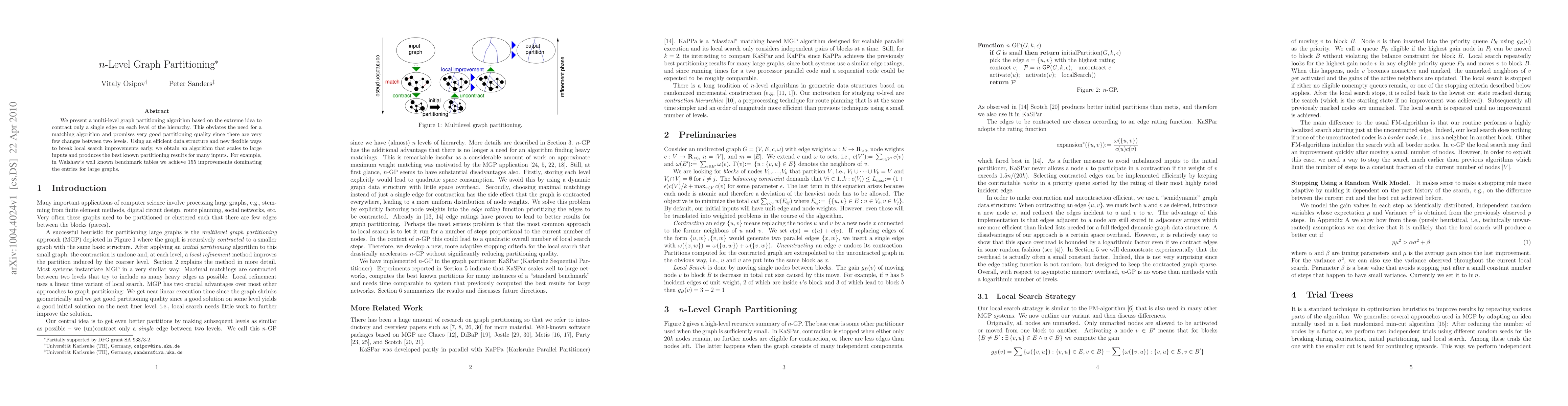 This paper introduces a novel multi-level graph partitioning algorithm that contracts only a single edge per level, avoiding the need for a matching algorithm and achieving excellent partitioning quality. The algorithm scales well to large inputs and outperforms existing methods, notably improving upon Walshaw's benchmark results for large graphs.