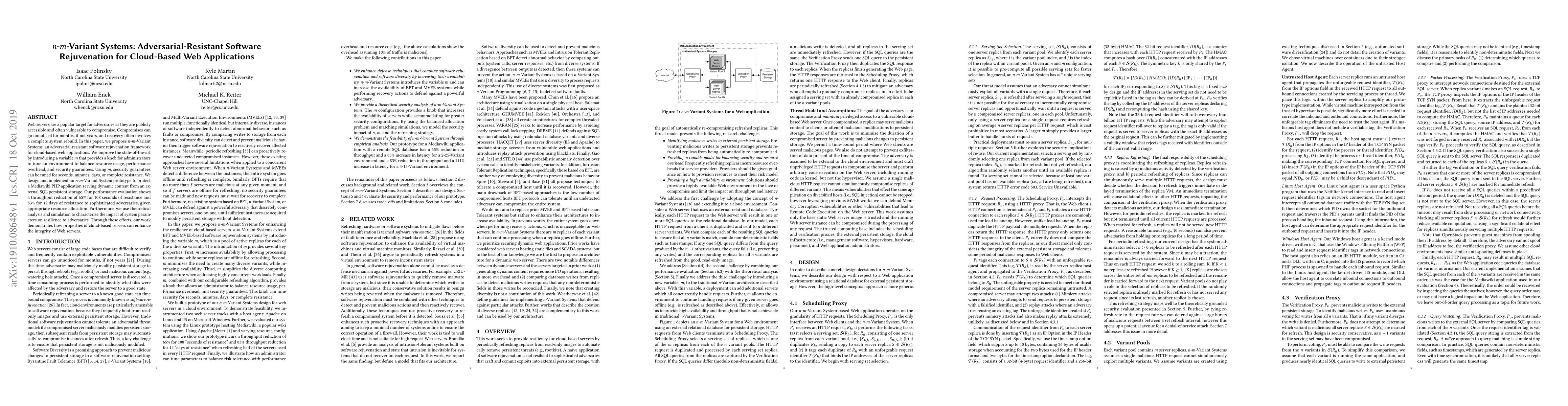 Researchers propose n-m-Variant Systems to protect cloud-based web applications from adversarial attacks, achieving seconds-to-days of resistance with a tunable security knob. This approach balances resource usage, performance overhead, and security guarantees.