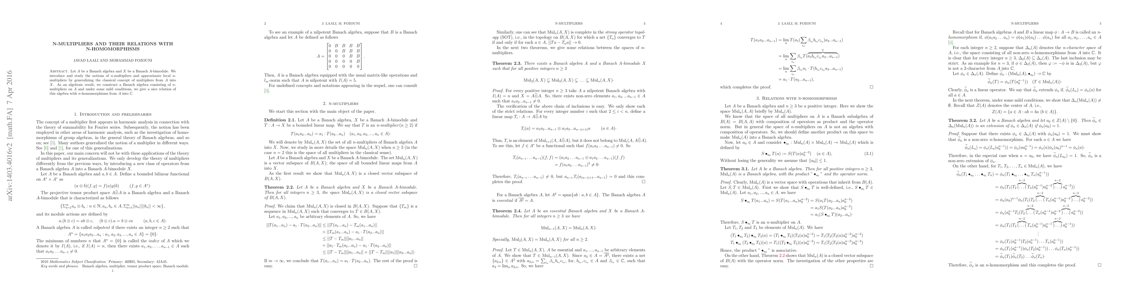 Let $A$ be a Banach algebra and $X$ be a Banach $A$-bimodule. We introduce and study the notions of $n$-multipliers and approximate local $n$-multipliers by generalizing the classical concept of multipliers from $A$ into $X$. As an algebraic result, we construct a Banach algebra consisting of $n$-multipliers on $A$ and under some mild conditions, we give a nice relation of this algebra with $n$-homomorphisms from $A$ into $\mathbb{C}$.
