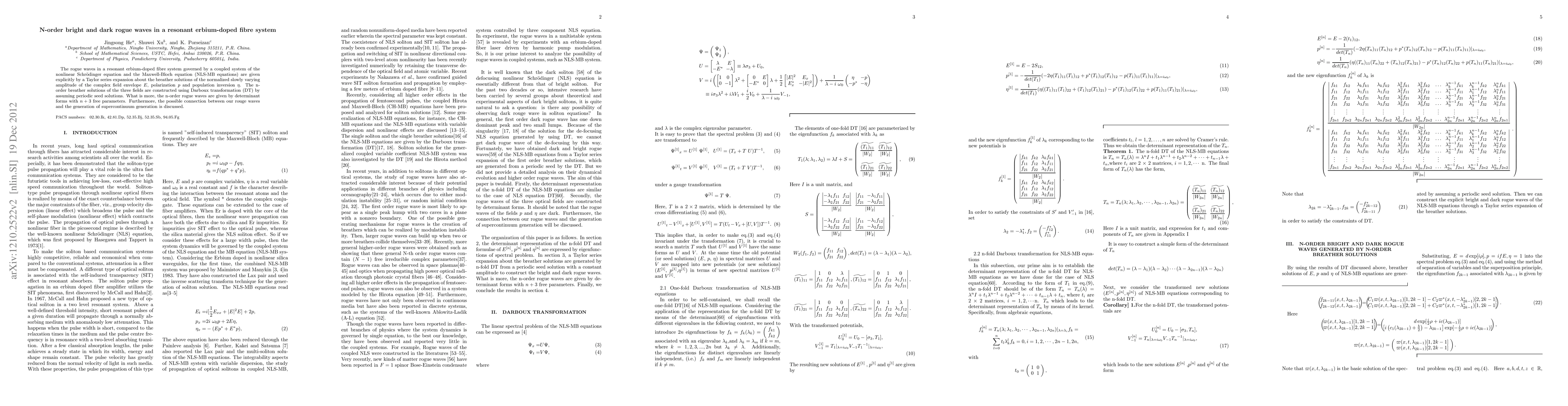 Researchers discovered explicit expressions for n-order rogue waves in a resonant erbium-doped fibre system, with connections to supercontinuum generation discussed.