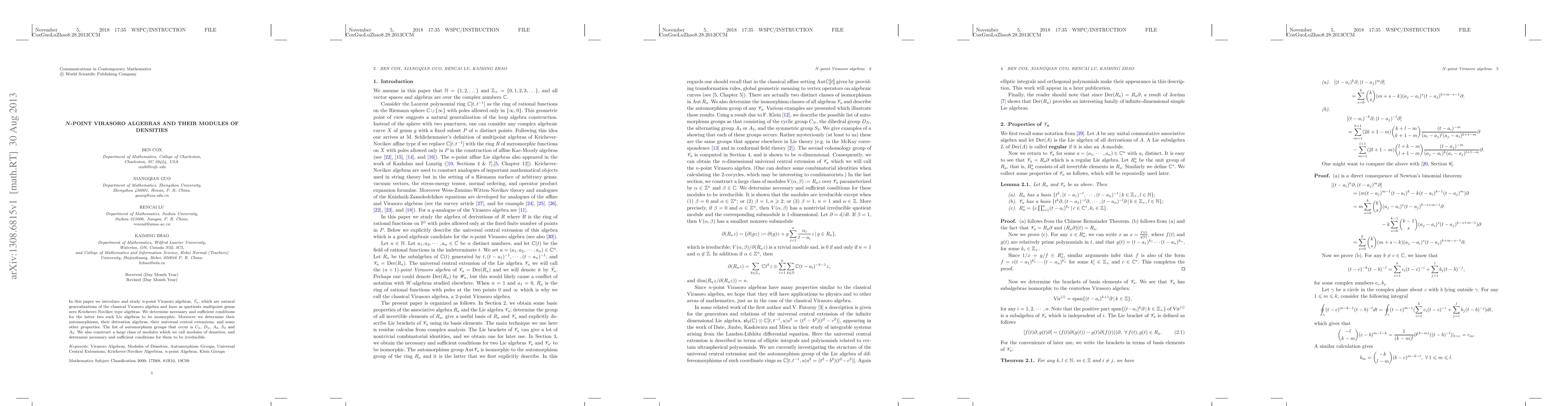 This paper introduces $n$-point Virasoro algebras, $\tilde{\W_a}$, as generalizations of the classical Virasoro algebra, and explores their properties including isomorphism conditions, automorphisms, and universal central extensions. It also constructs modules of densities and determines conditions for their irreducibility.