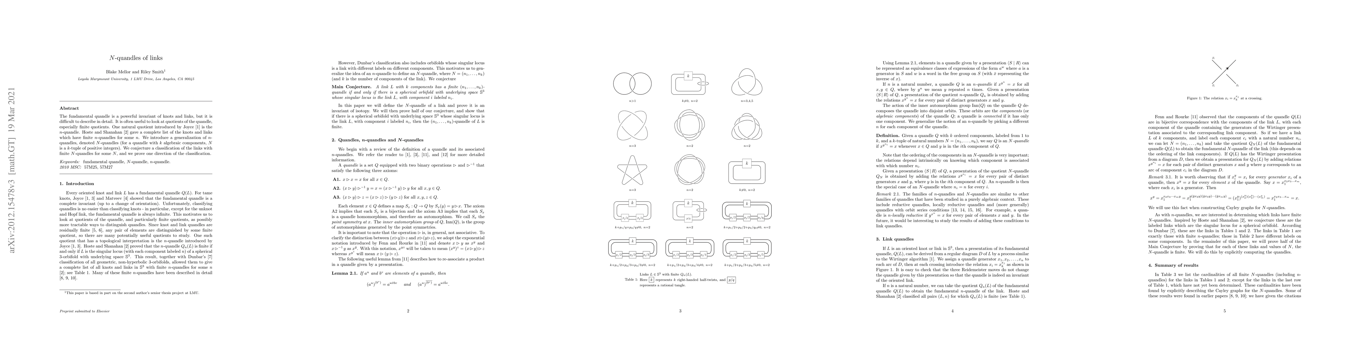 The paper introduces $N$-quandles, a generalization of $n$-quandles for studying links, and conjectures a classification of links with finite $N$-quandles, proving one direction of this classification.