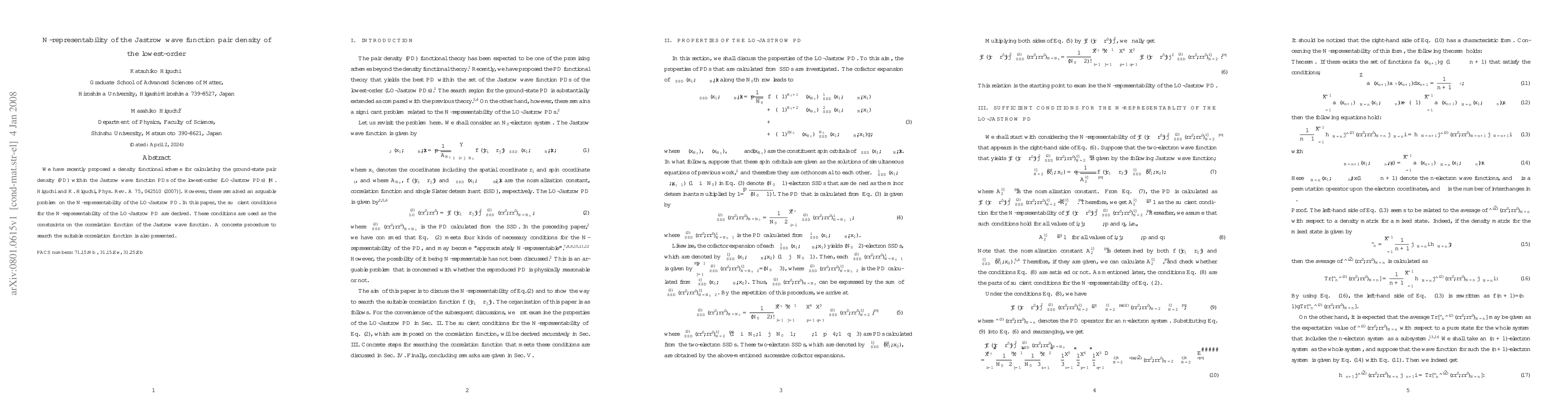 We have recently proposed a density functional scheme for calculating the ground-state pair density (PD) within the Jastrow wave function PDs of the lowest-order (LO-Jastrow PDs) [M. Higuchi and K. Higuchi, Phys. Rev. A \textbf{75}, 042510 (2007)]. However, there remained an arguable problem on the $N$-representability of the LO-Jastrow PD. In this paper, the sufficient conditions for the $N$-representability of the LO-Jastrow PD are derived. These conditions are used as the constraints on the correlation function of the Jastrow wave function. A concrete procedure to search the suitable correlation function is also presented.