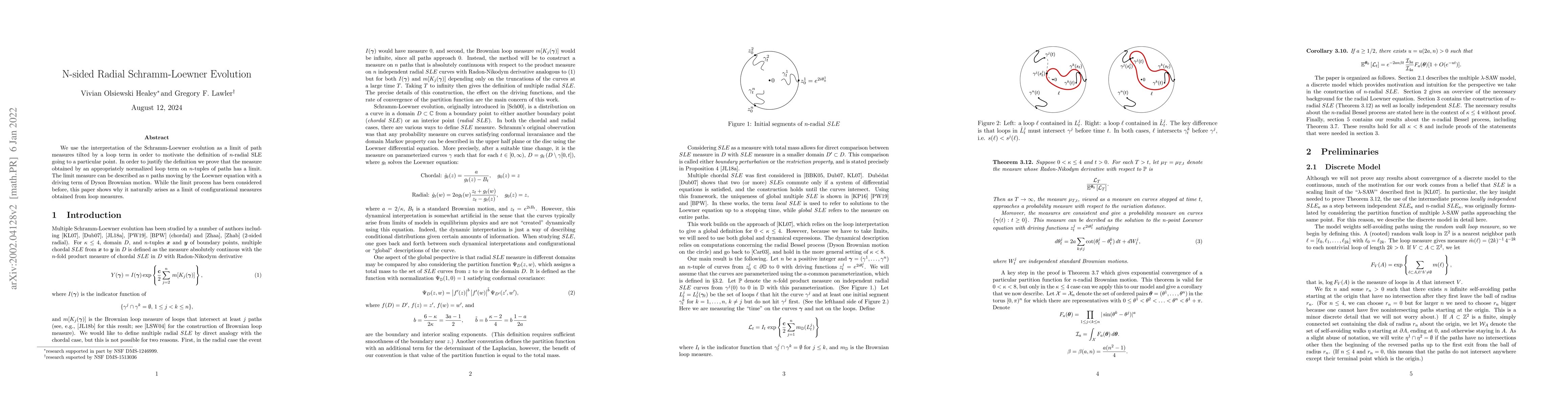 This paper defines $n$-radial Schramm-Loewner Evolution (SLE) through the limit of path measures influenced by a loop term, showing that this limit corresponds to $n$ paths evolving via the Loewner equation driven by Dyson Brownian motion. The authors justify their definition by proving the existence of this limiting measure.