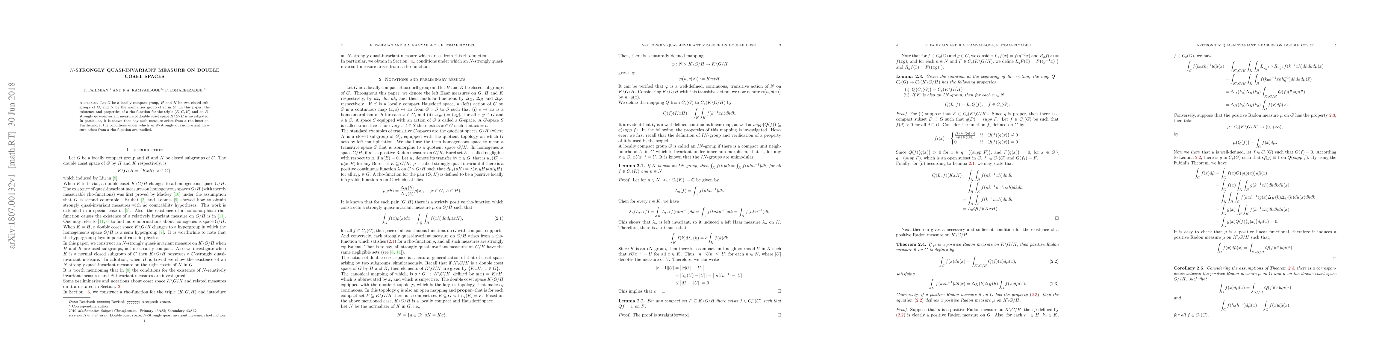 Let G be a locally compact group, H and K be two closed sub-groups of G, and N be the normalizer group of K in G. In this paper, the existence and properties of a rho-function for the triple (K,G,H) and an N-strongly quasi-invariant measure of double coset space K\G/H is investigated. In particular, it is shown that any such measure arises from a rho-function. Furthermore, the conditions under which an N-strongly quasi-invariant measure arises from a rho-function are studied.