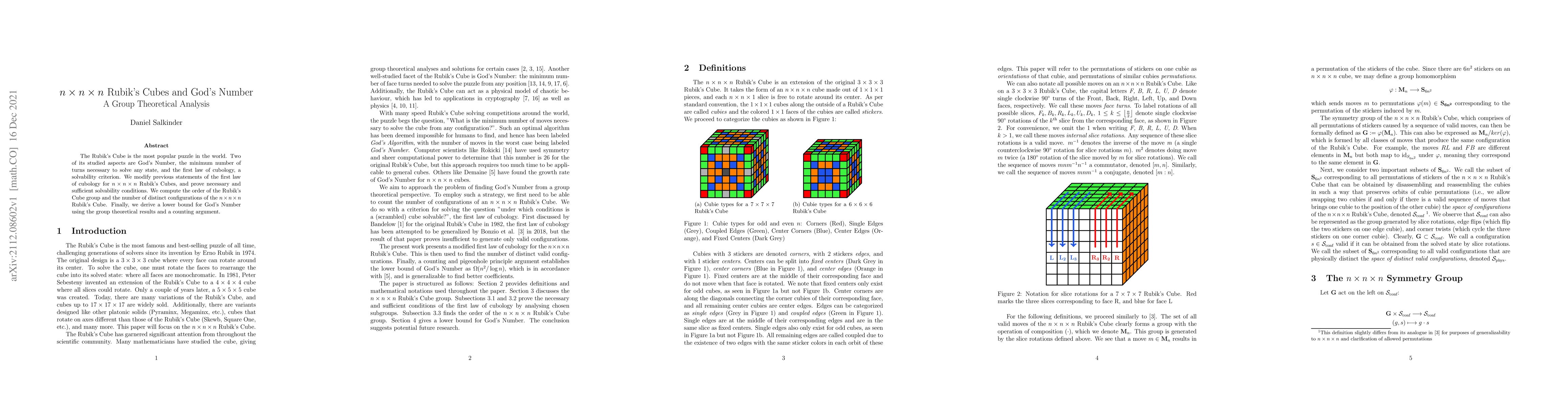 This paper studies the $n \times n \times n$ Rubik's Cube, modifying the first law of cubology to establish necessary and sufficient solvability conditions. It also computes the Rubik's Cube group order and the number of distinct configurations, ultimately deriving a lower bound for God's Number.