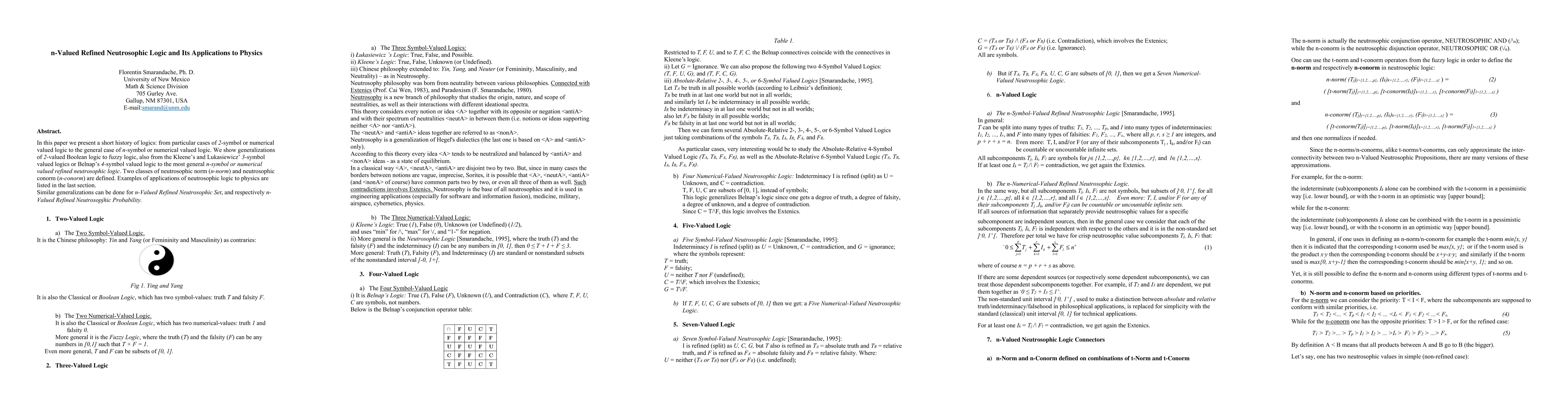 This paper generalizes Boolean logic to n-valued refined neutrosophic logic, defining n-norm and n-conorm classes. It provides examples of applying this advanced logic to physics, extending beyond binary and ternary logics to encompass broader numerical values.
