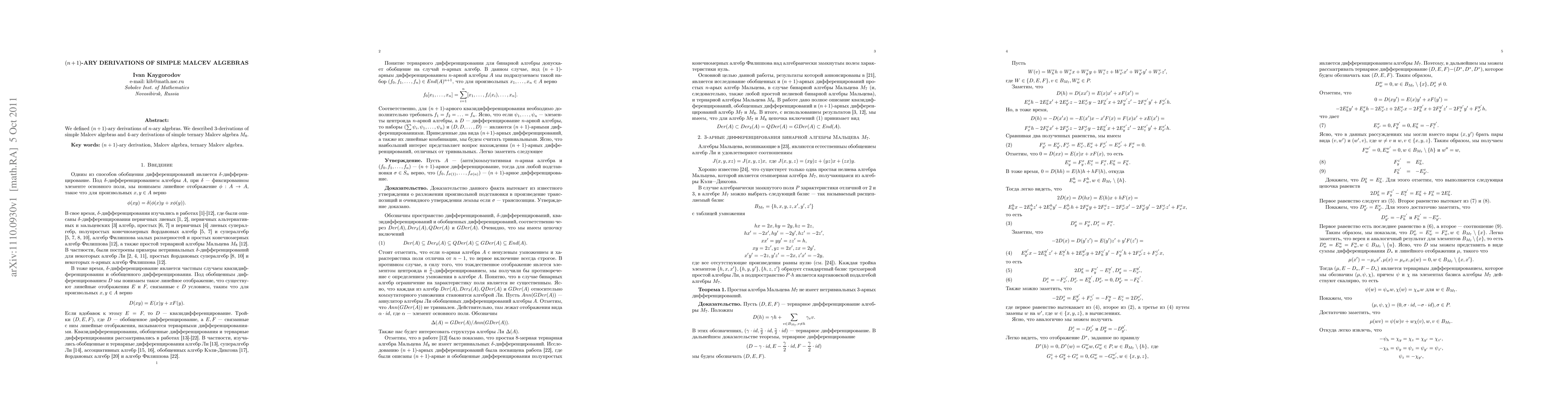 This paper defines (n+1)-ary derivations for n-ary algebras, focusing on 3-derivations of simple Malcev algebras and 4-ary derivations specifically for the ternary Malcev algebra M_8. It explores the structure and properties of these derivations in the context of simple Malcev algebras.